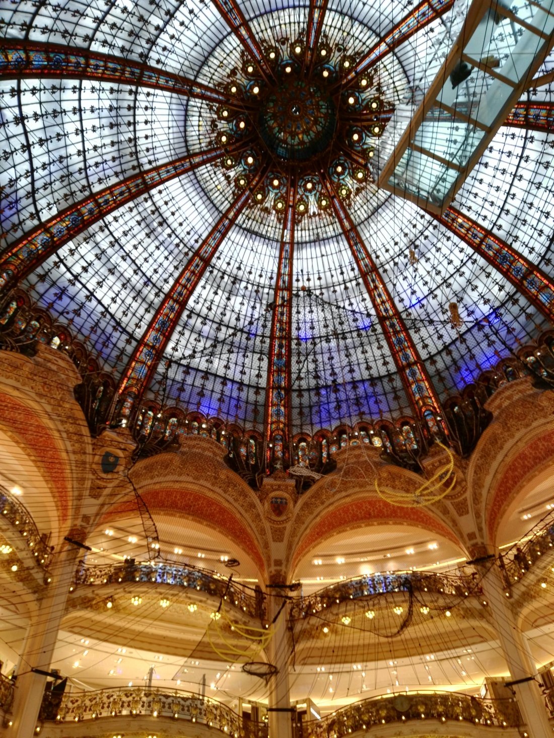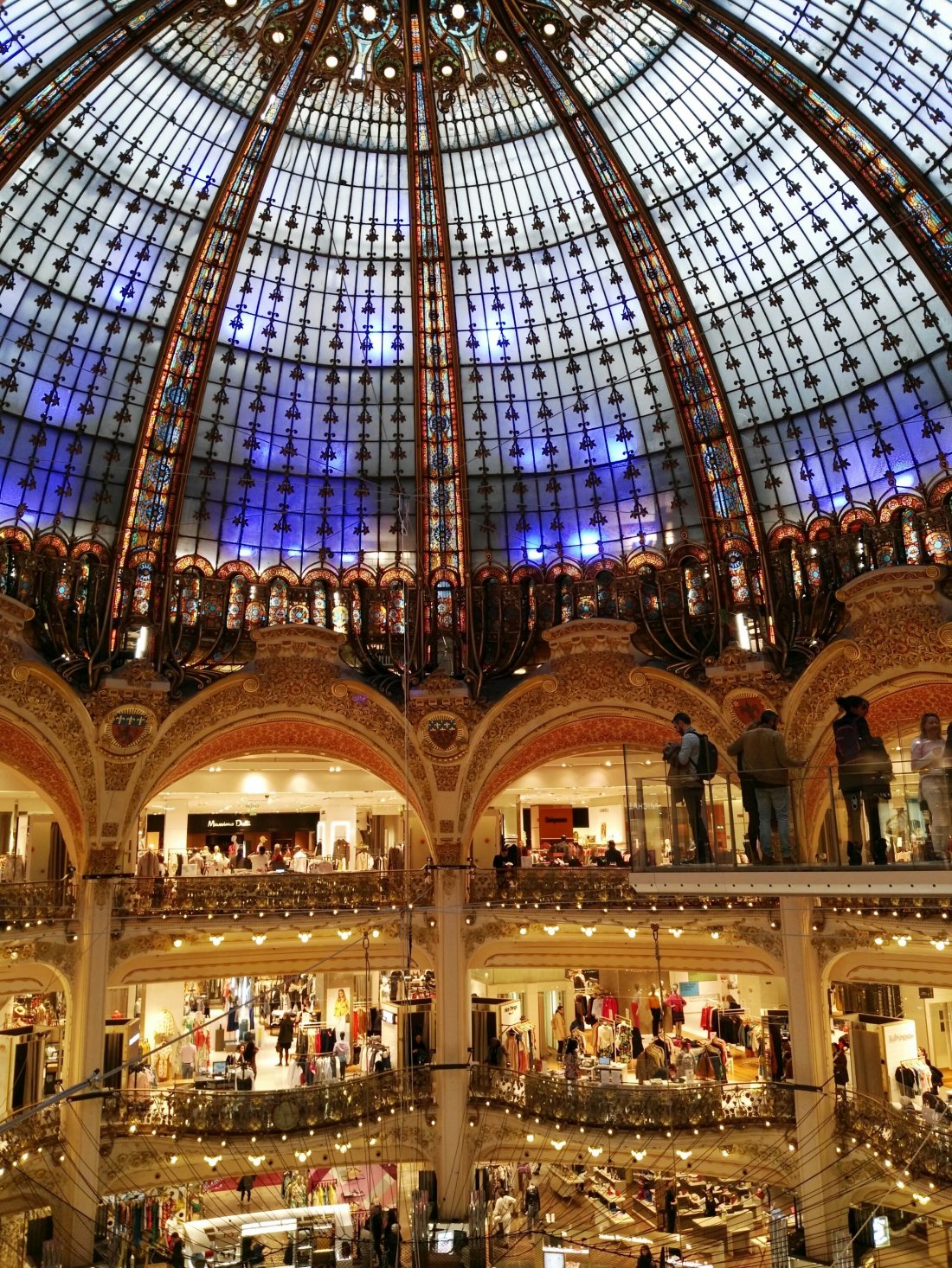 Um 17.00 Uhr geht es per Metro zur Madeleine, von dort zur Oper und in die Galerie lafayette mit schöner Kuppel und Aussichtsterrasse. Von dort dann wieder zur métro am Gare St. Lazare, um nach Montparnasse zu fahren.