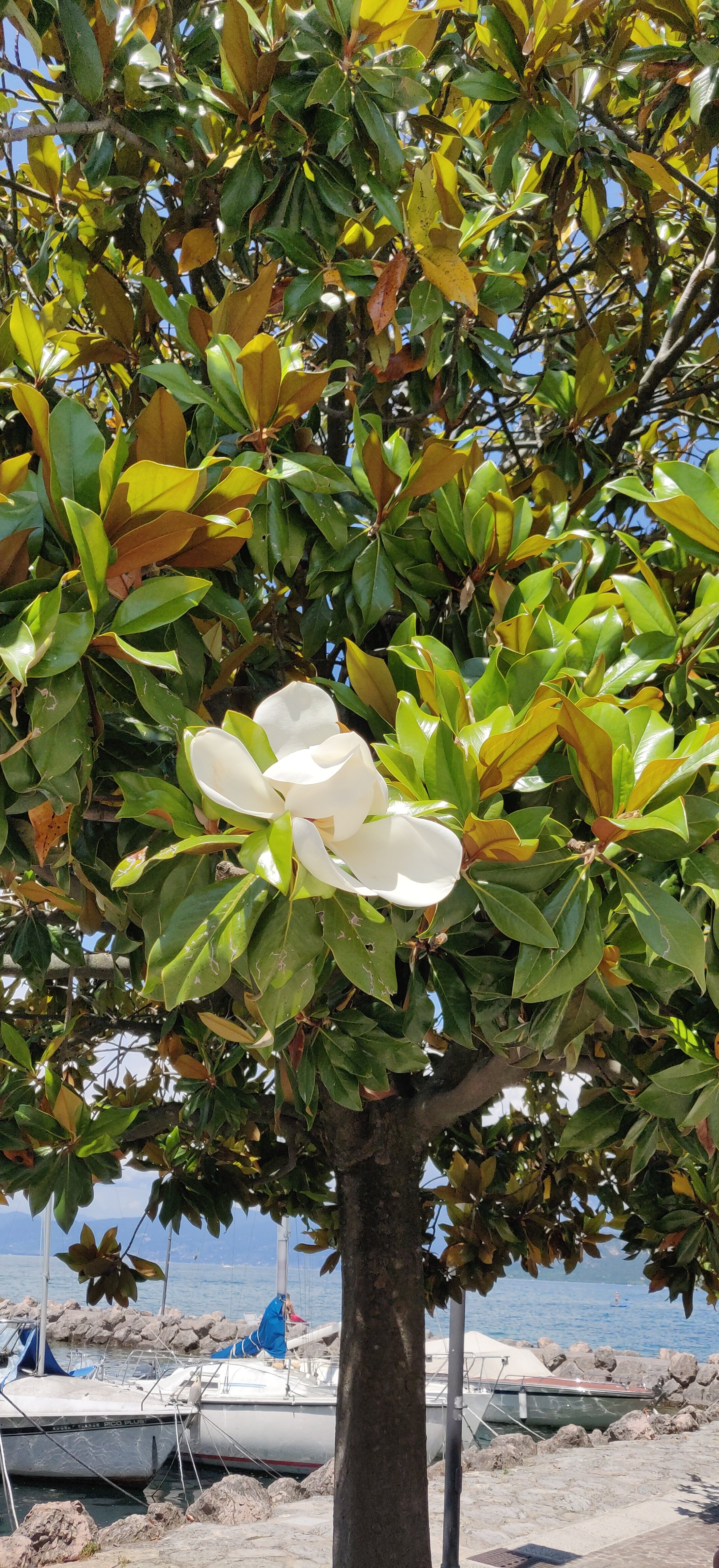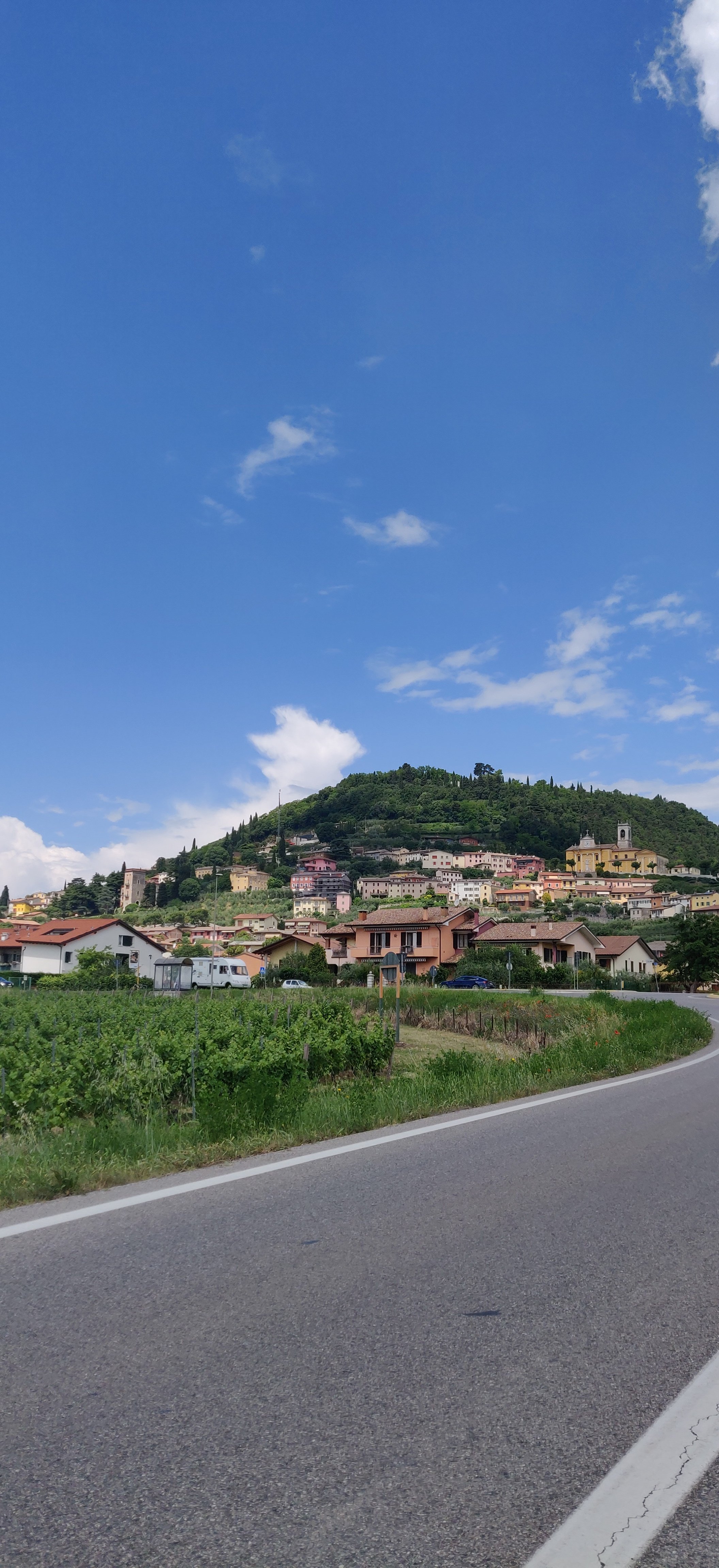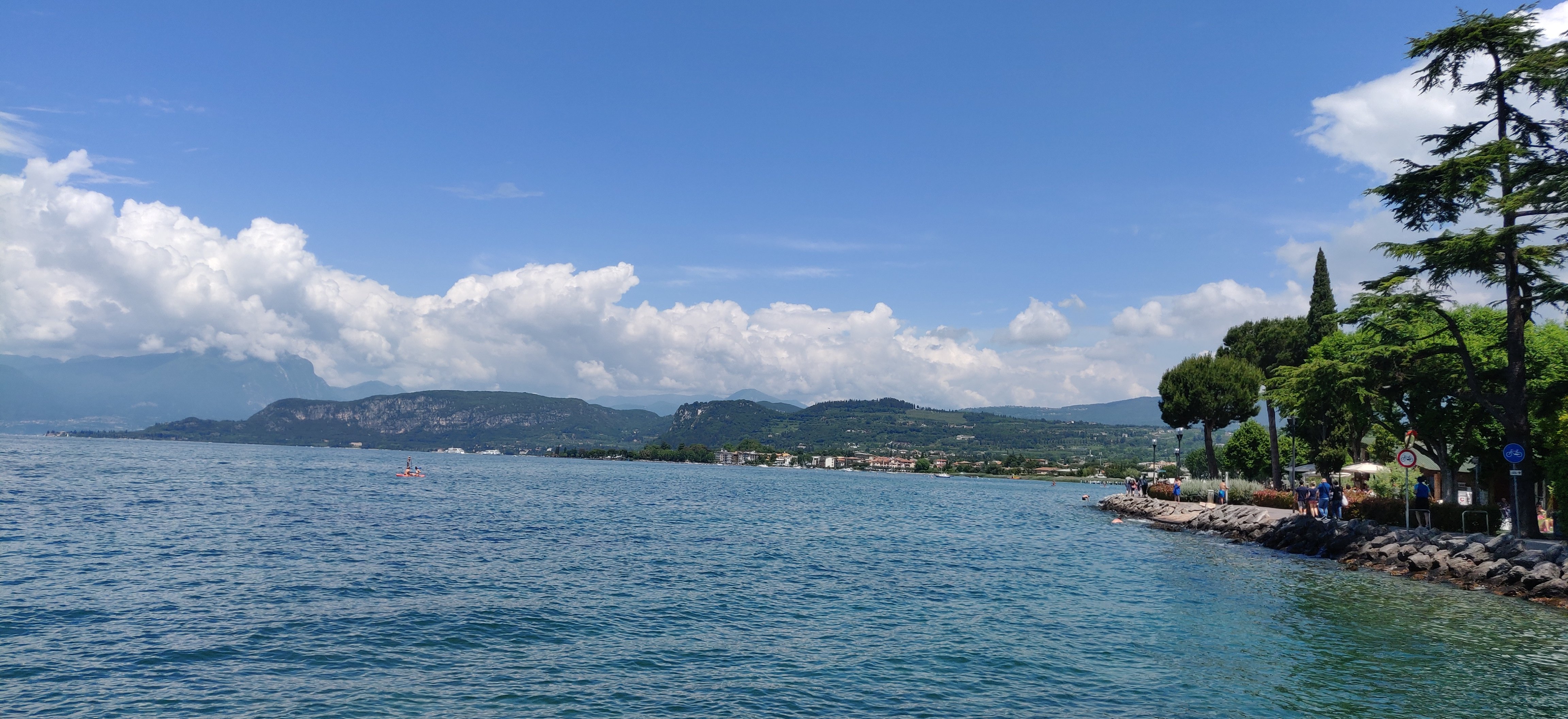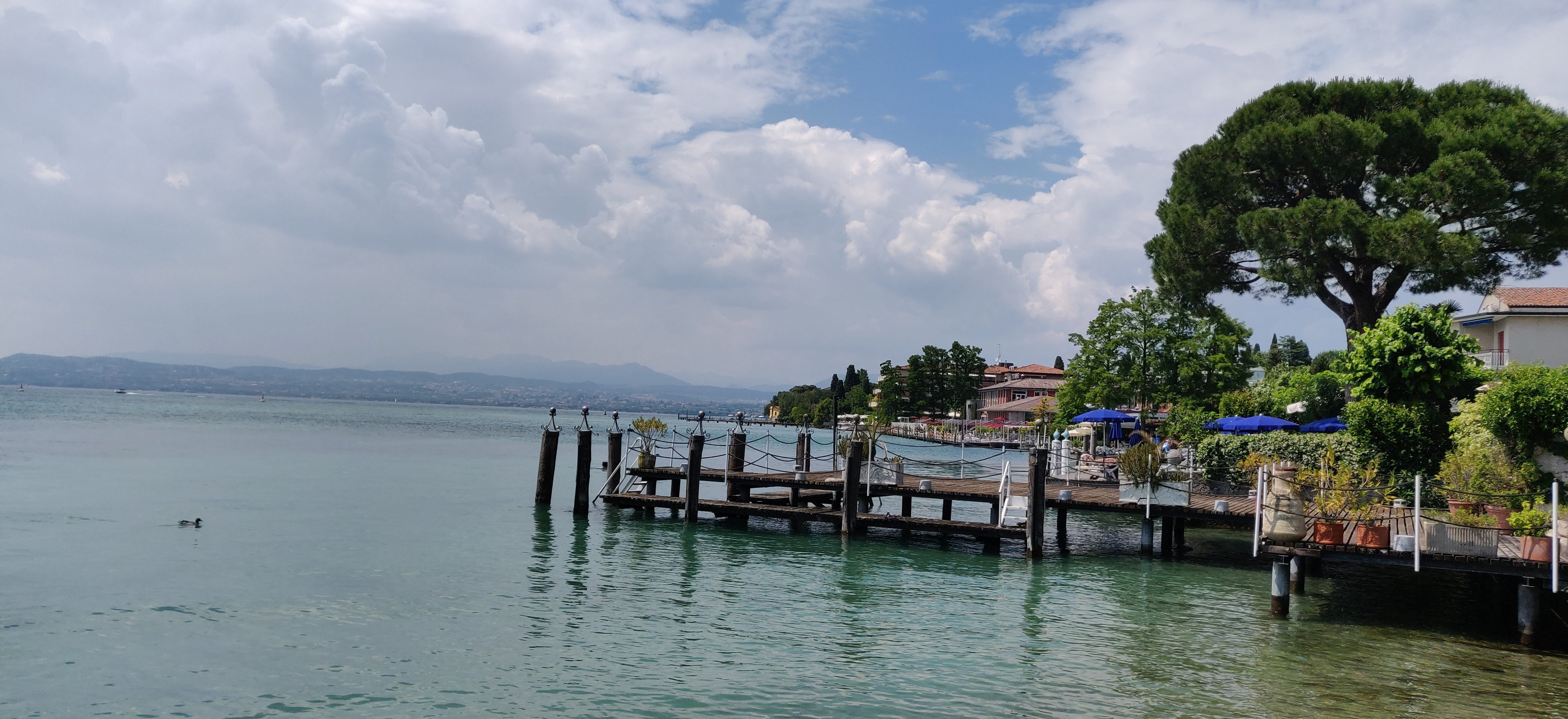 Von Innsbruck aus, wo es am Sonntag regnet, geht es directamente weiter an den Gardasee. Die Fahrt über den Brenner ist angenehm. Bei der Ausfahrt nach Bardolino wird es mal kurz heftig mit dem Verkehr. Etwas ausserhalb von Bardolino parke ich und laufe in ein paar Minuten zum See hinunter. Wie ihr seht, ist das Wetter herrlich. Ich trinke einen campari Soda und fahre weiter nach Sirmione.