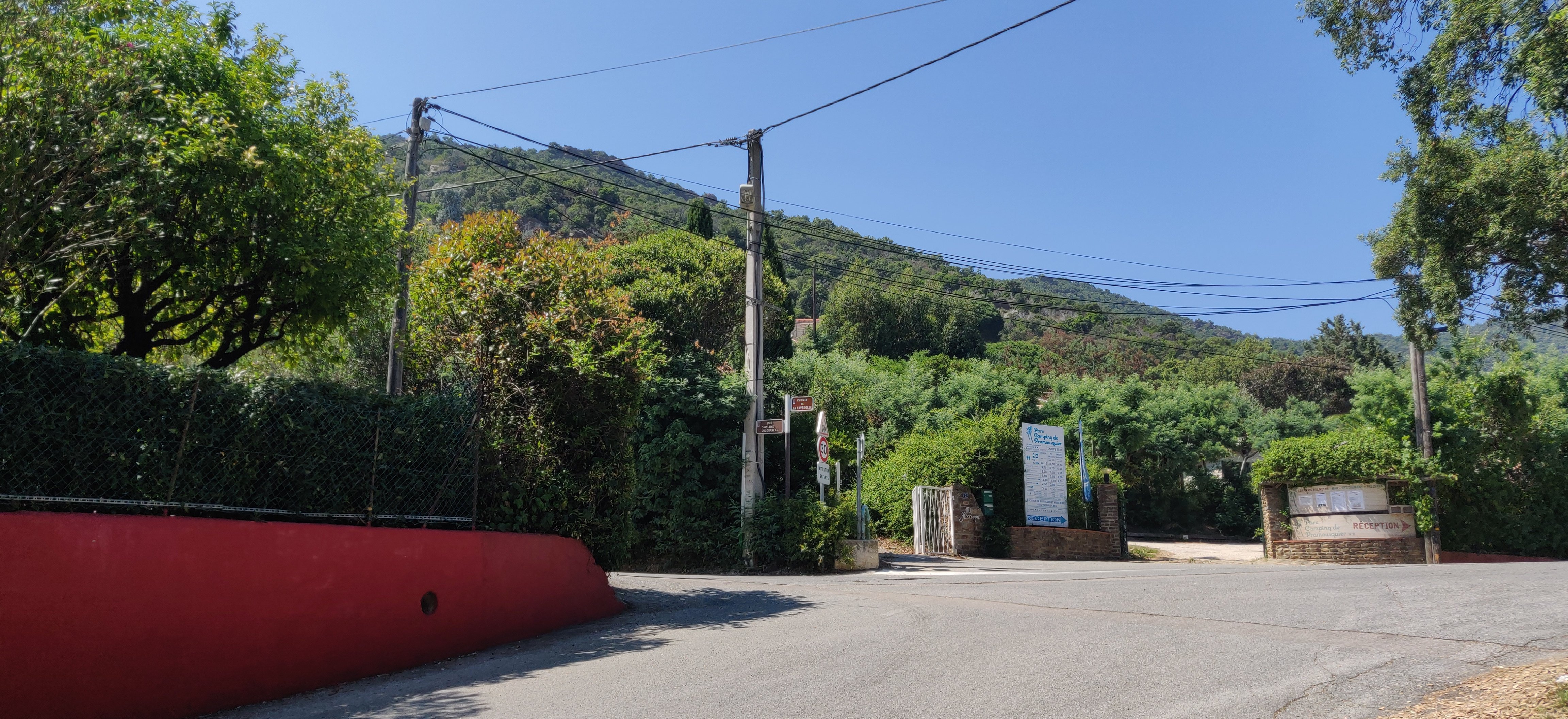 Ich fahre weiter auf die Küstenstraße Richtung Cavalaire und Le Lavandou. In Pramousquier halte ich nochmals an der Stelle an, an der Jürgen am 30.6.2020 los gelaufen ist. Ich sehe ihn heute noch bildlich vor mir, wie er den Berg hoch läuft mit meinem orangenen Rucksack über der Schulter.