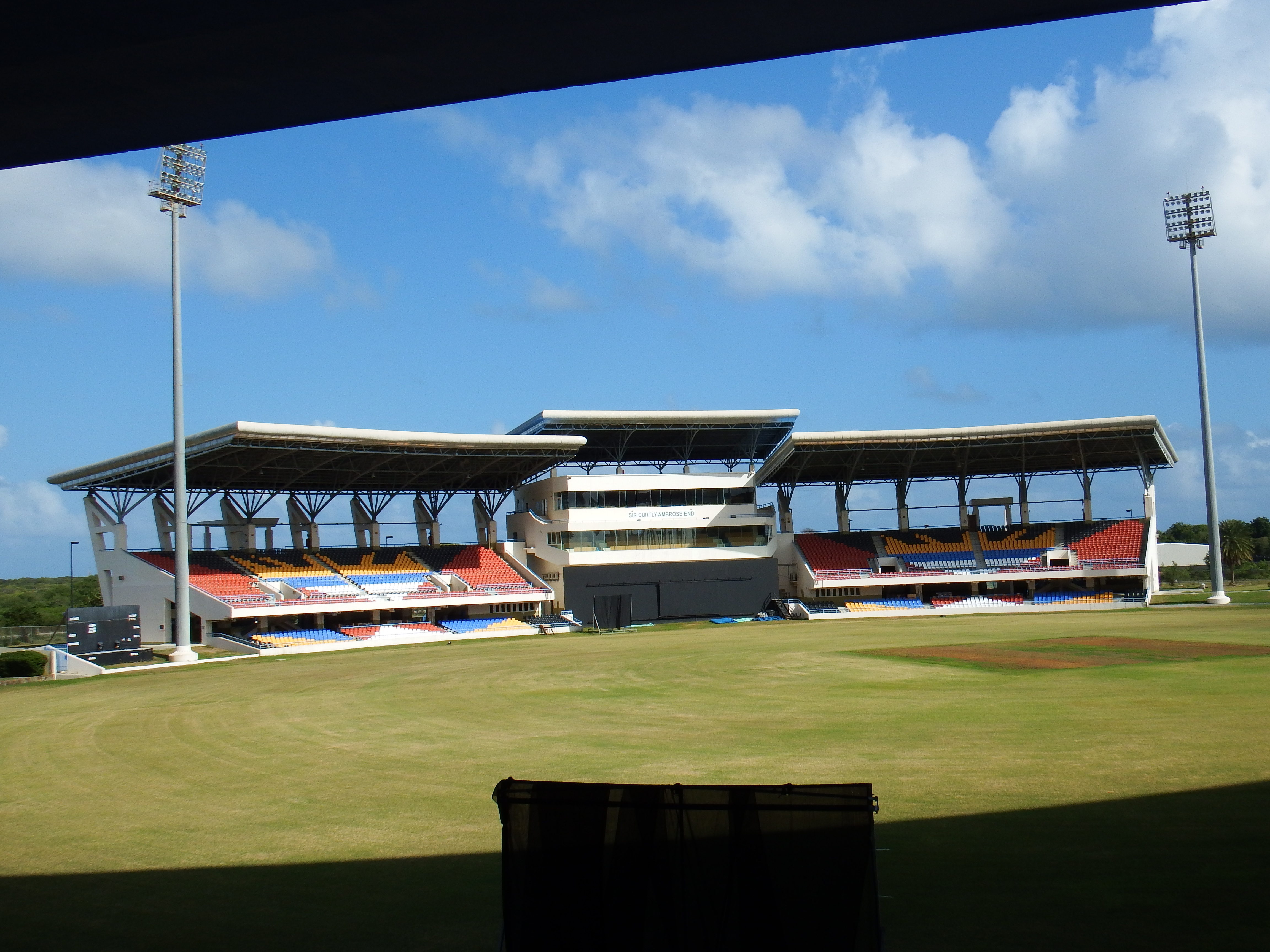 1. Halt Cricket Stadion – ein Volkssport auf Antigua und das einzige Stadion mit einem Pool. Wir machen einen kurzen Fotostopp.