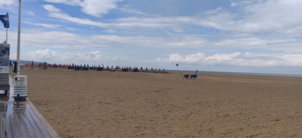 Ich bringe die Einkäufe ins Auto und laufe an den Strand von Deauville.