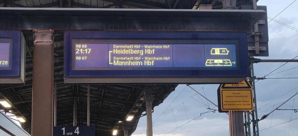 Der Anschluss nach Langen klappt auch. Von dort geht es nach Mannheim, wo ich 20 Minuten zum Umsteigen habe.