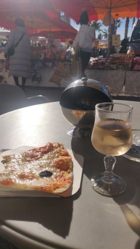 Einen kurzen Halt machen wir noch auf der französischen Seite in le Canet en Roussillon, wo wir eine Schinkenplatte „Jamon Pan Tomate“ und ein Glas Rotwein genießen.