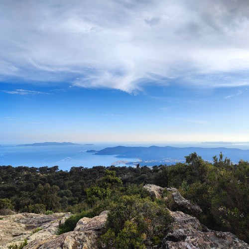 Auch oben an der Route des Crêtes halten wir nochmals an und lassen von dort oben die gemeinsam verbrachten letzten 25 Jahre hier in Bormes nochmals Revue passieren. Michael und Markus können sich auch an vieles erinnern.