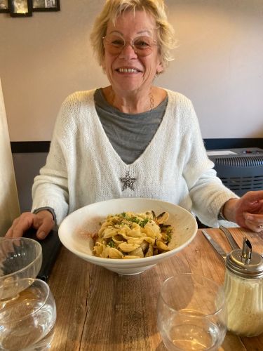 Erst um 14 Uhr ergattern wir einen Tisch und speisen bis 16.00 Uhr.