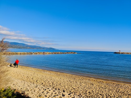 Um 13.00 Uhr treffe ich Evelyne für einen sonnigen Spaziergang am Meer entlang. Um 14 Uhr stoßen die Zwillinge dazu und wir laufen bis la Faviere. Dort ist tote Hose und wir nehmen auf dem Rückweg noch einen Drink im l’effet Mer. Es ist einfach traumhaft.