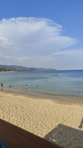 Sonntags gehe ich mit Evelyne und Peter ins l’effet mer zum späten Mittagessen. Heute hat es 36 Grad. Das Wasser 24 Grad. Ich schwimme lange.