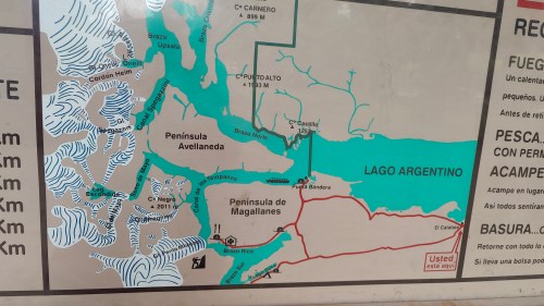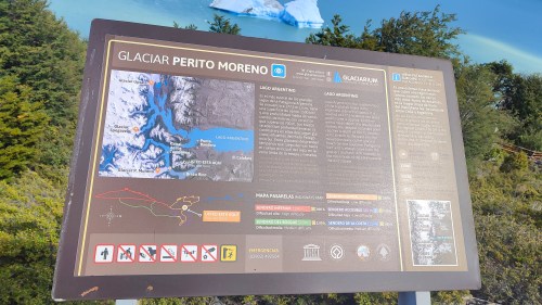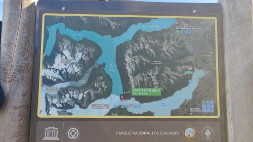 Aber ich finde auf der Übersichtskarte den richtigen Weg zurück zum Bootsanleger, wo uns unser Kleinbus um 14.30 Uhr wieder abholt und zurück nach El Calafate bringt.