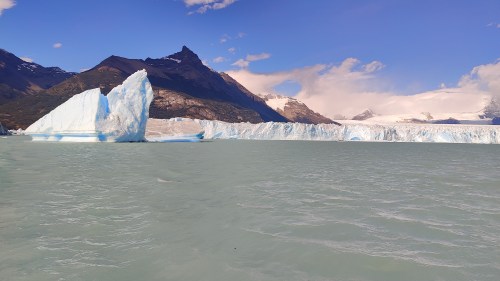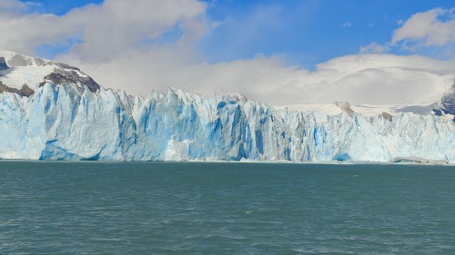 Es ist nach Mittag und leider liegt die Gletscherwand auf dieser Seite im Schatten. Es ist also gut, die Bootsfahrt gleich nach der Ankunft zu machen, um den Gletscher im vollen Sonnenlicht zu sehen.